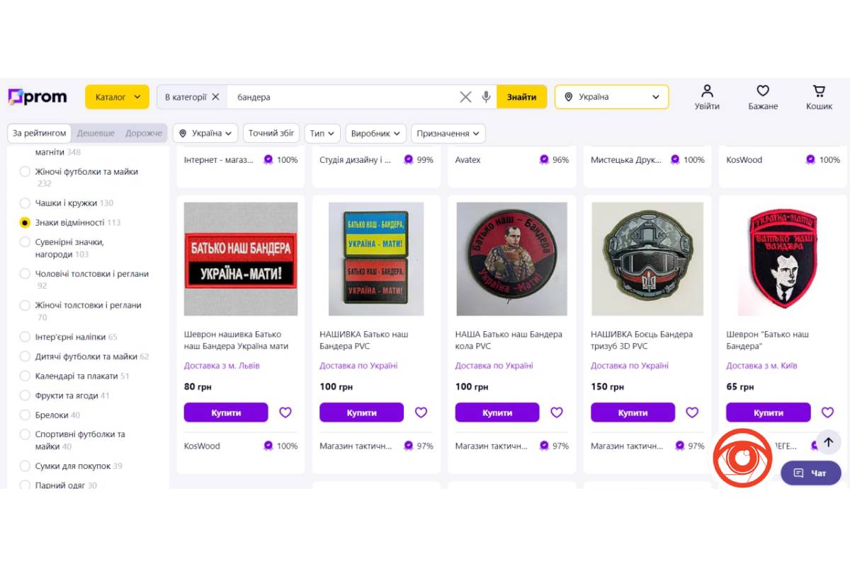 Сьогодні на одному з найбільших онлайн-маркетплейсів України, Prom.ua, за запитом “Бандера” знаходяться сотні й тисячі товарів. Найбільше тут чохлів для телефона з портретом Провідника, 7888 позицій. Тут і портрети, й вже згадані Бандера-смузі.