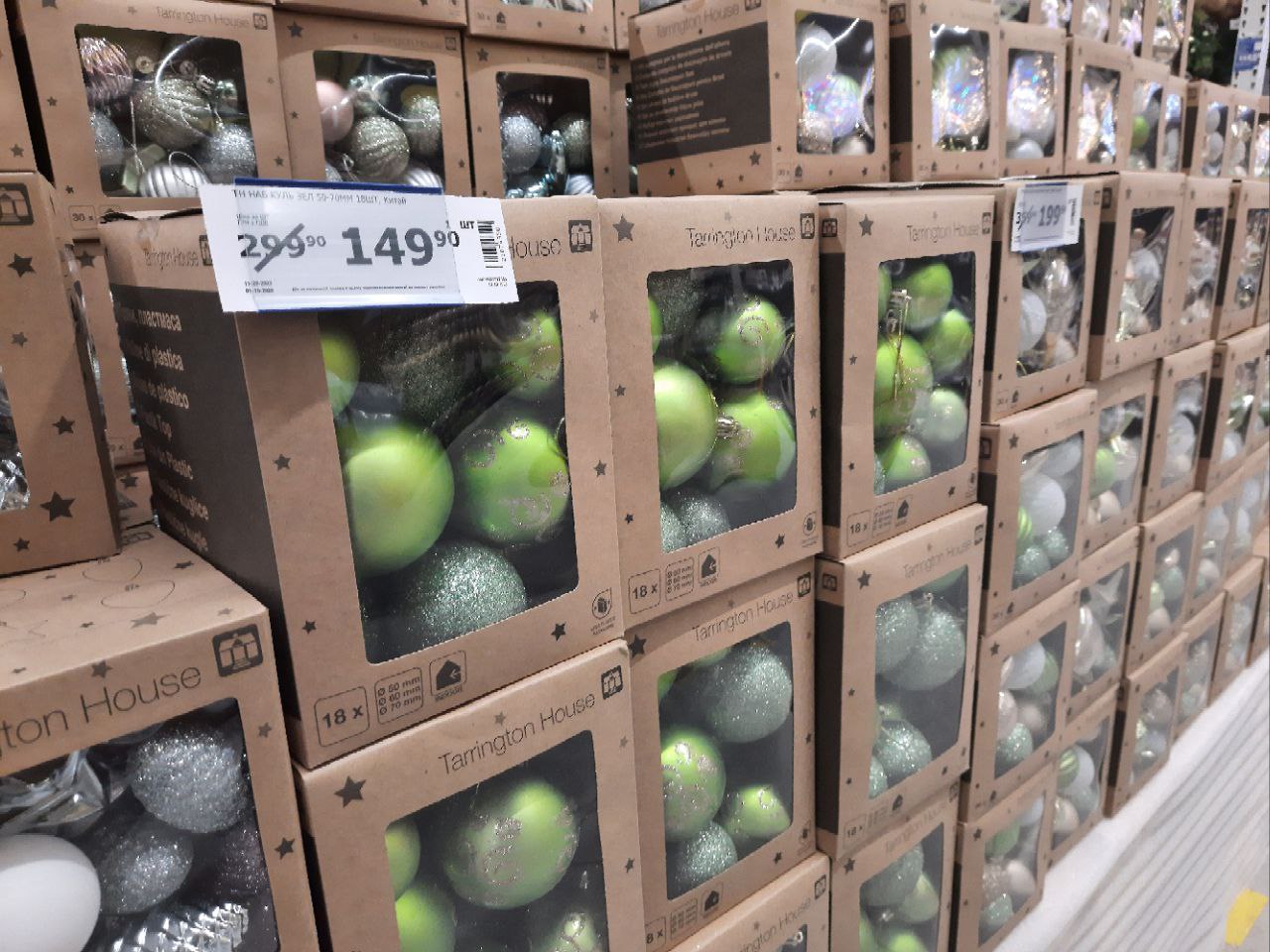 Найбільший вибір новорічних прикрас припадає на великі гіпермаркети, такі як “Метро”, “Велмарт”, “Епіцентр”, але, крім супермаркетів, іграшки продаються майже всюди.