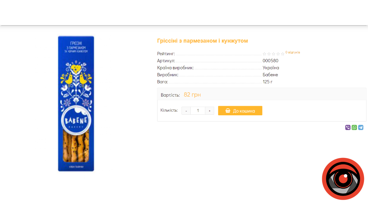 8. Палички хлібні, 125 г, 82 гривні.