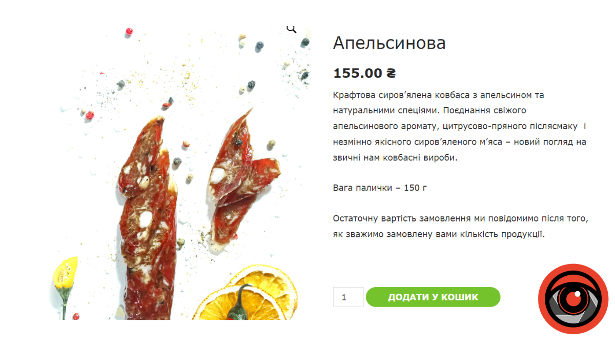 7. Сиров’ялена ковбаса з апельсином, 15о грамів, 155 гривень.