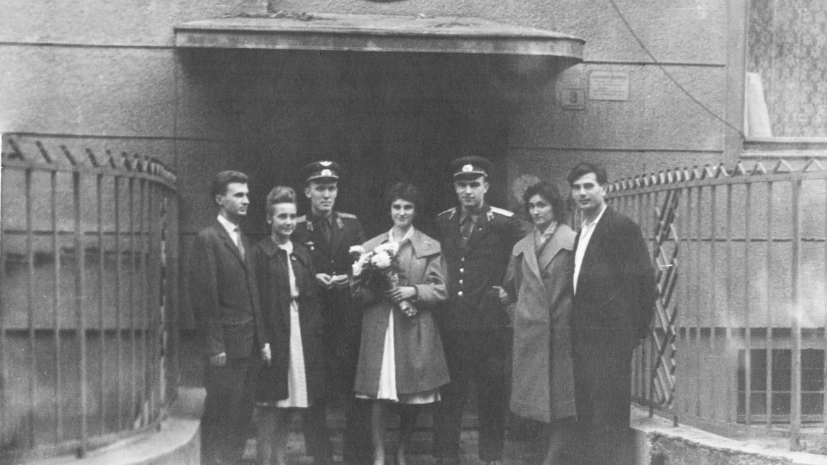 вул. Драгоманова, 3. 1963 . По середині молодята. Фотоархів Вікторія Вагіль.
