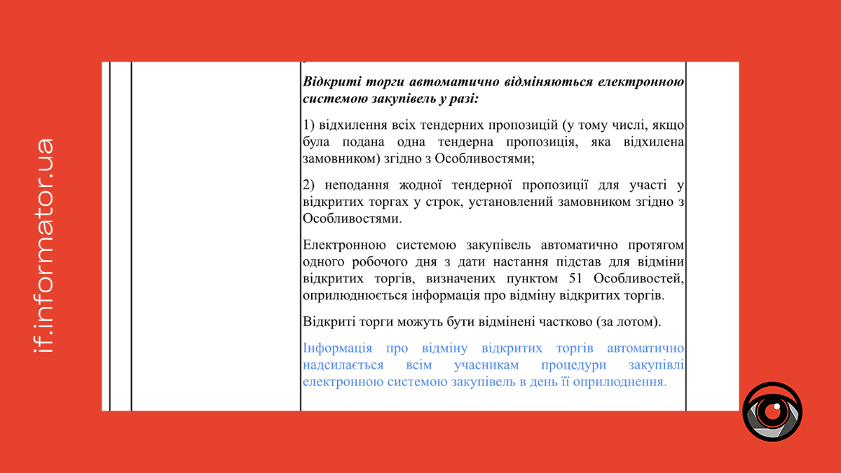 Інформатор Івано-Франківськ ділиться деталями закупівлі з покликанням на Prozorro.