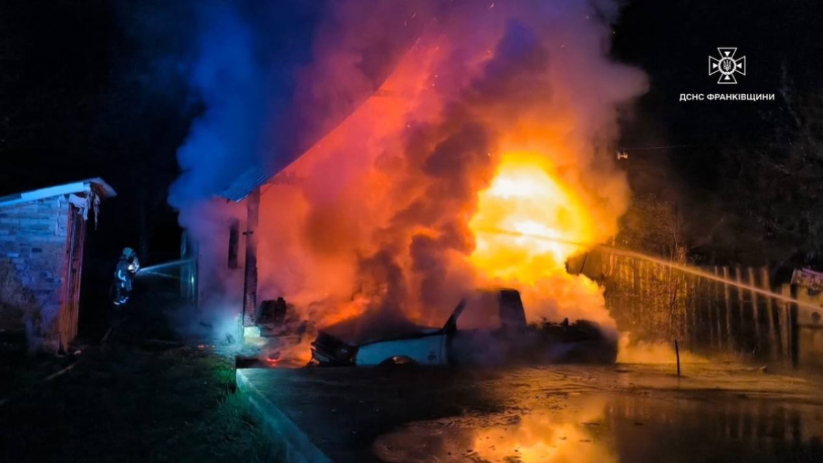 Ще одна пожежа на Прикарпатті: вогонь охопив авто та господарські будівлі