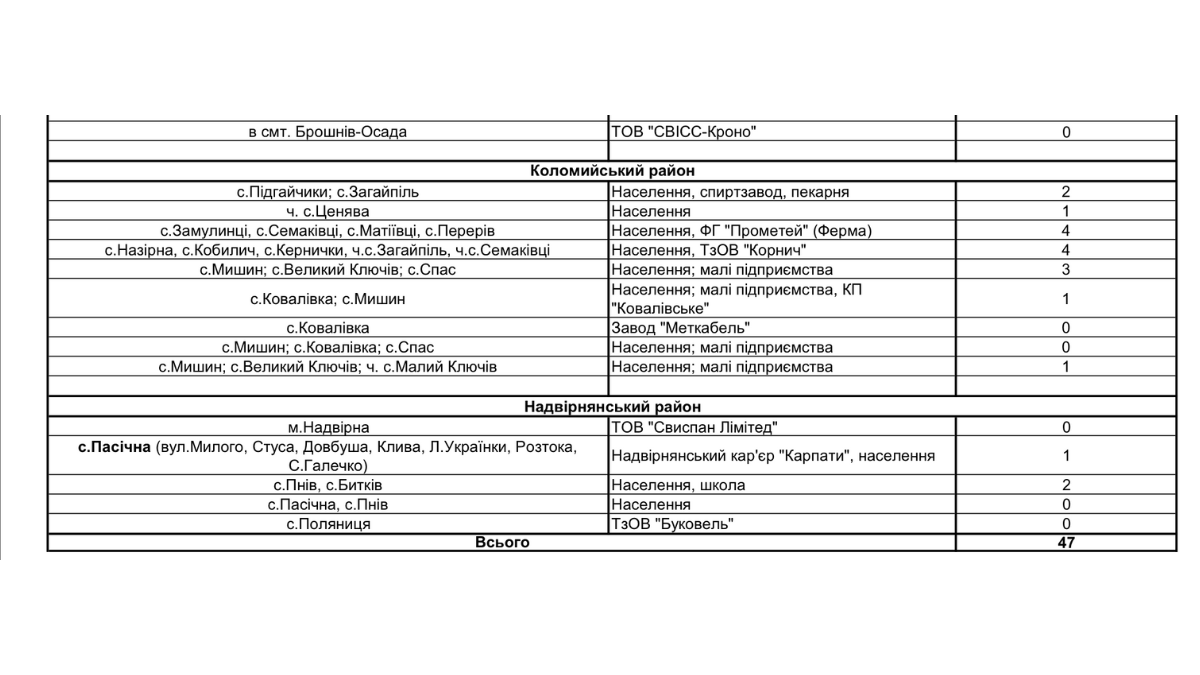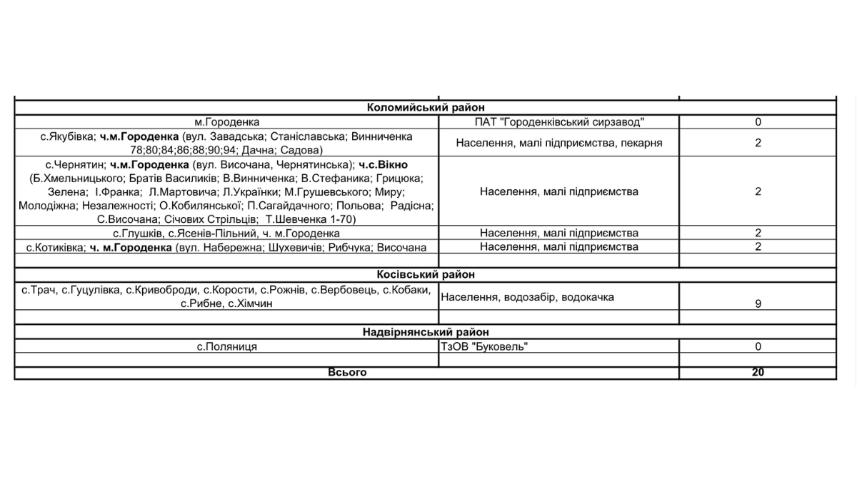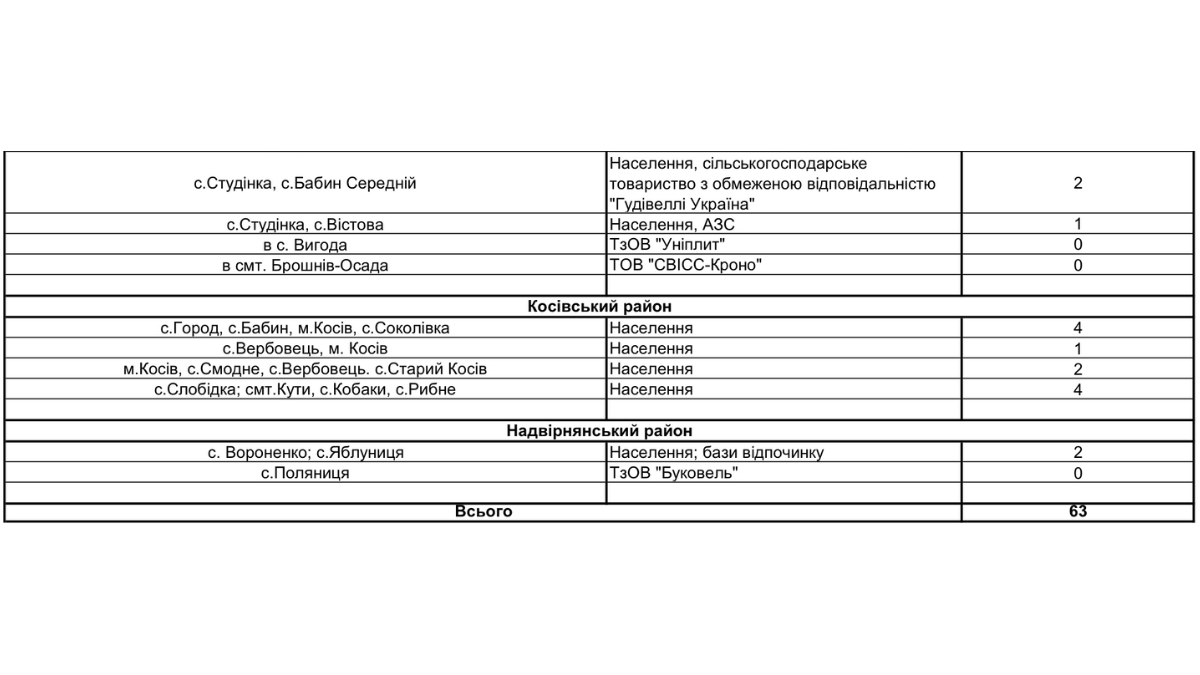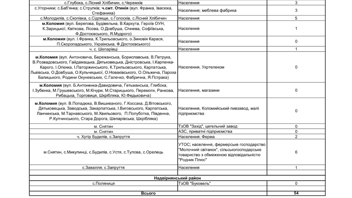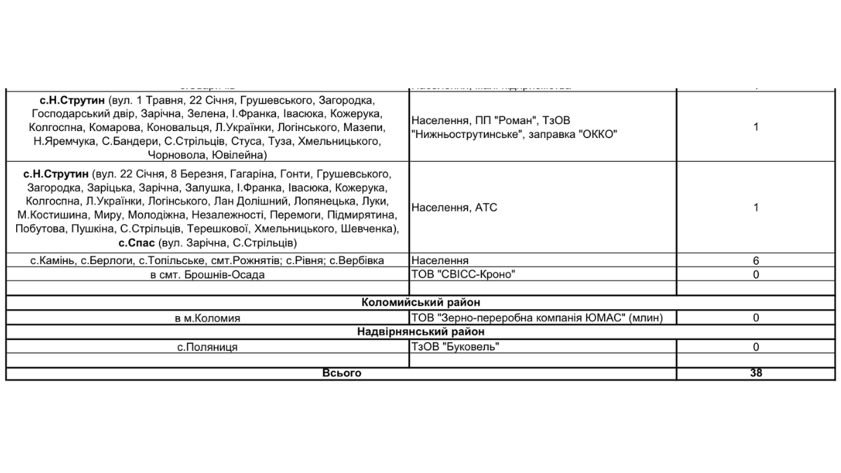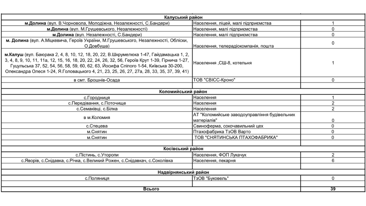 Інформатор Івано-Франківськ ділиться повним переліком з покликанням на Прикарпаттяобленерго.