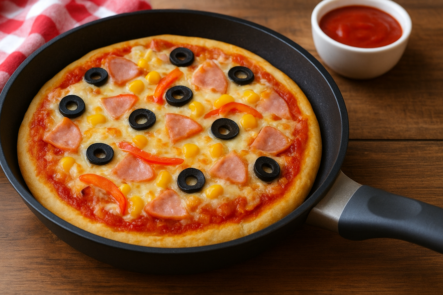 Коли хочеться піци, а часу на приготування обмаль, виручає рецепт, який можна зробити просто на сковорідці. Усього десять хвилин — і на столі гаряча домашня піца з ароматною скоринкою та розтопленим сиром.