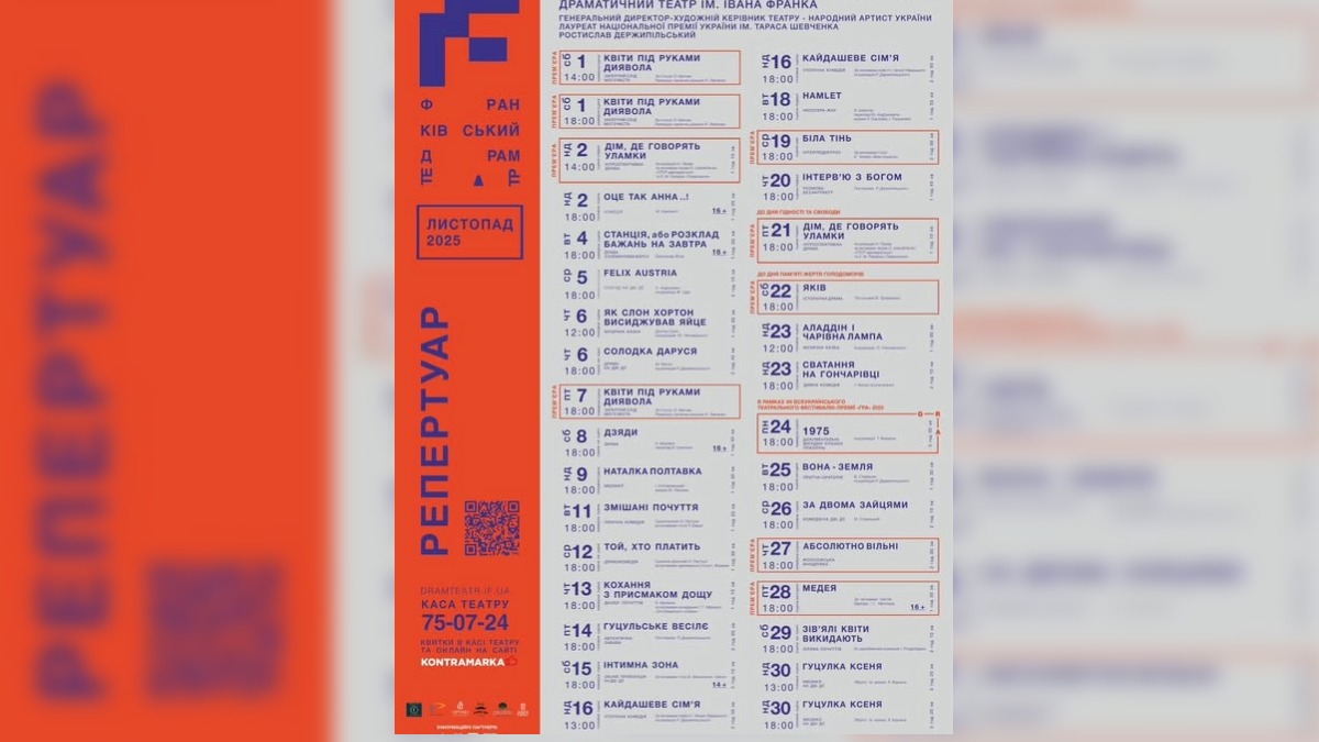 У листопаді Івано-Франківський національний академічний драматичний театр імені Івана Франка покаже 33 вистави. Серед них також історична драма “Яків” до дня пам’яті жертв Голодомору.