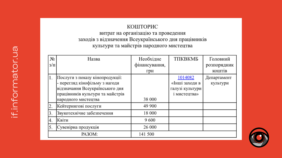 Згідно із кошторисом на ці події виділили понад 140 тисяч гривень.