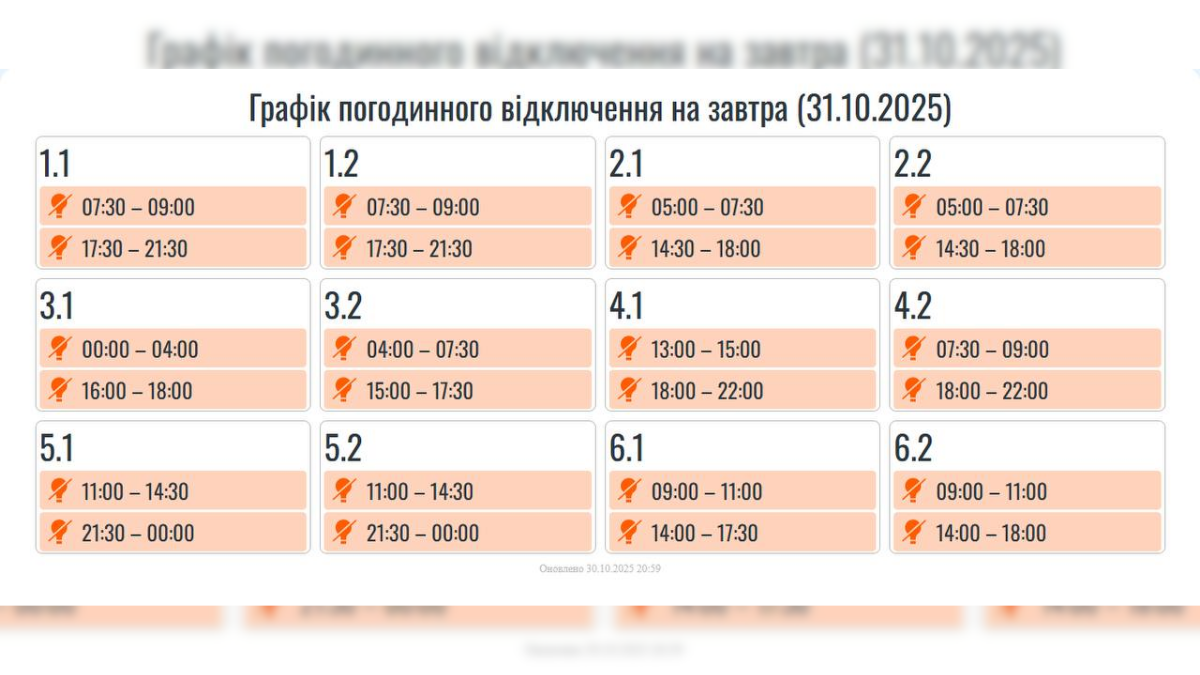 Завтра, 31 жовтня, через складну ситуацію в енергосистемі по всій Україні, зокрема на Прикарпатті, застосовуватимуть графіки обмеження споживання.