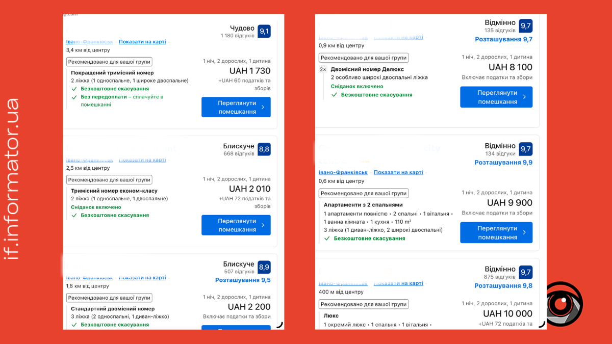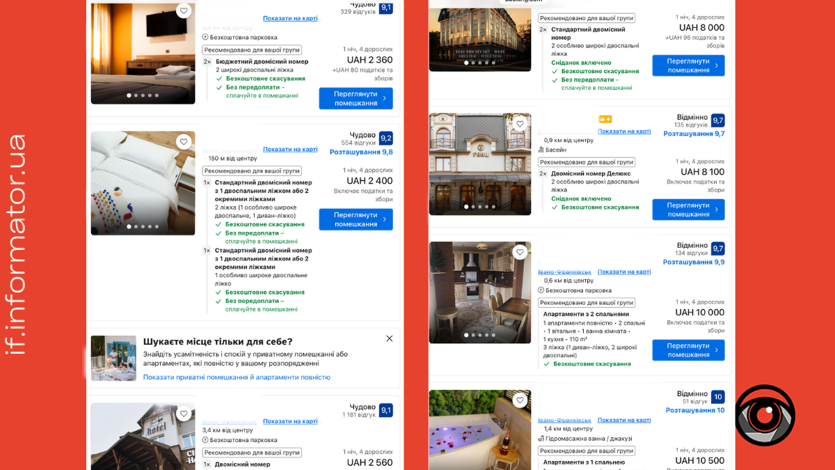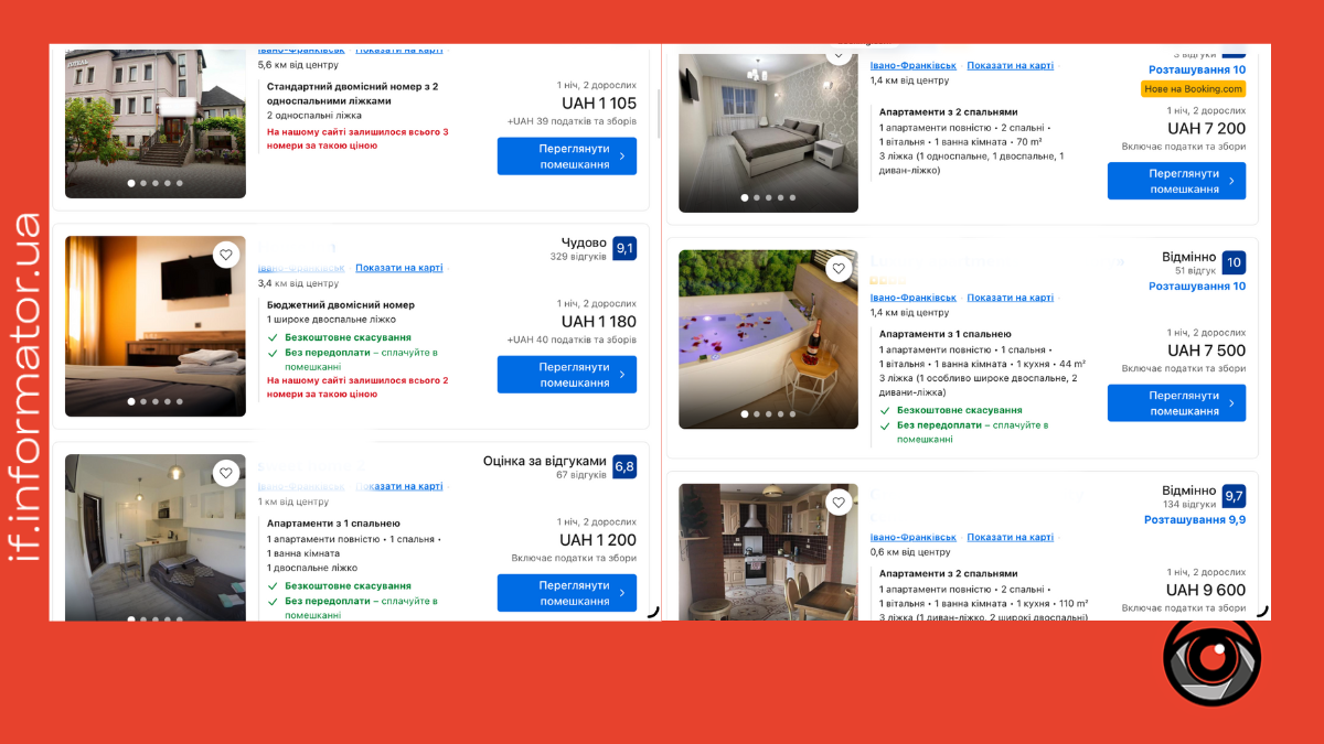 У нашому матеріалі аналізуємо ціни на 1 ніч.