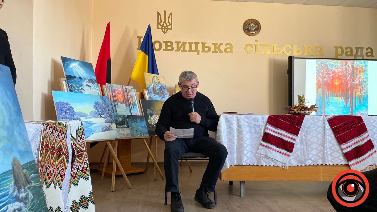 Виставка під назвою «Доторкнутись творчістю неба» представила живописні полотна митця, що вразили глядачів щирістю, теплом і гармонією. Картини випромінюють світло, спонукають до роздумів про природу, віру та внутрішню рівновагу. У кожній роботі — особливий погляд автора, майстерне відчуття кольору, світла і композиції.