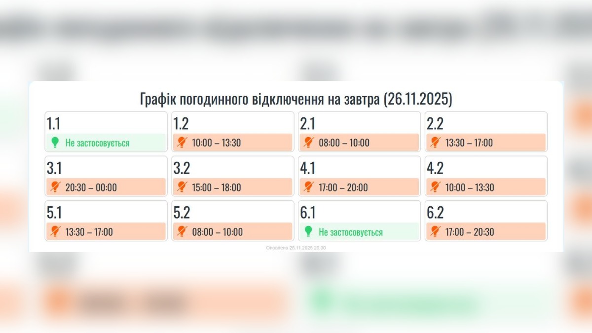 26 листопада по Івано-Франківській області протягом доби будуть застосовані погодинні відключення електроенергії.