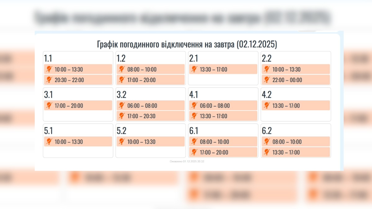 Графіки погодинних вимкнень на Франківщині 2 грудня