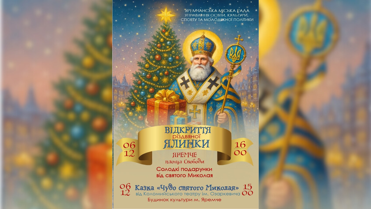 Перед тим, як засвітиться ялинка, у будинку культури м. Яремче Коломийський театр імені Озаркевича зіграє казку «Чудо святого Миколая». Початок о 15:00.