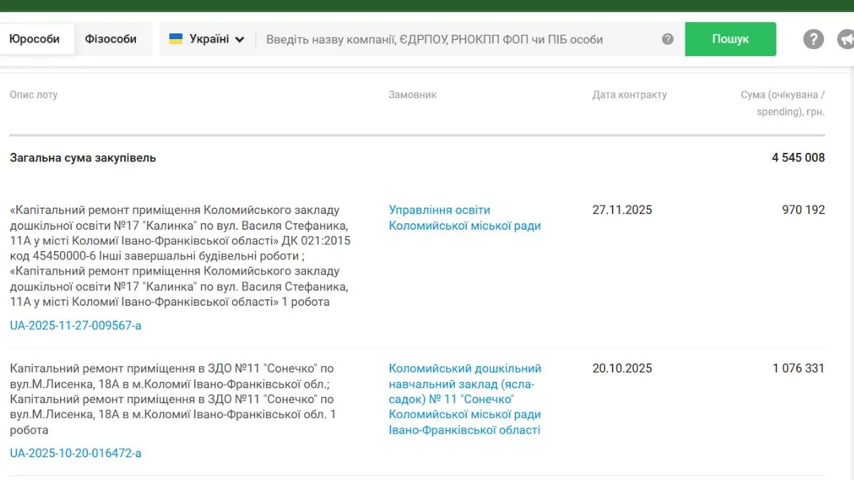 Восени було укладено договір на капітальні ремонти у двох садочках Коломиї. Послуги вкладалися у вимоги допорогових закупівель, тому договір було підписано без використання електронної системи.