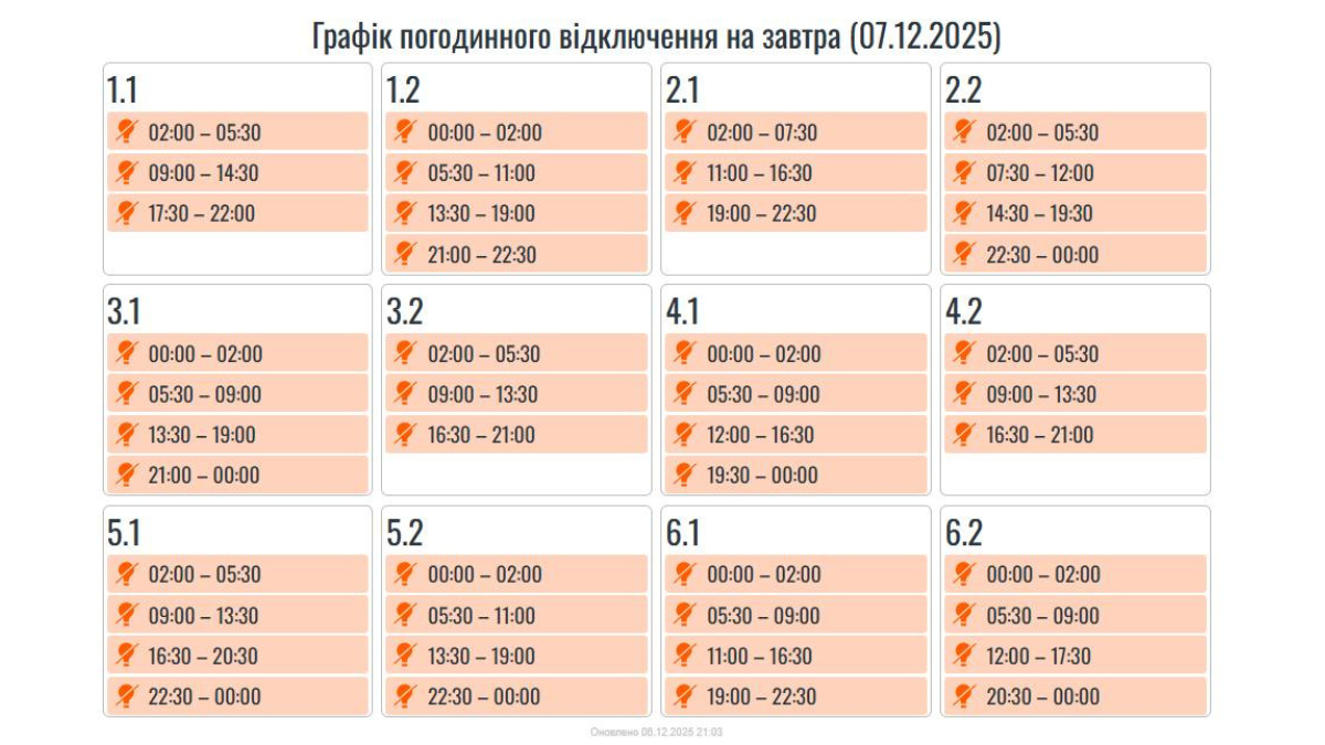 Завтра, 7 грудня, в Івано-Франківській області діятимуть графіки погодинних вимкнень.