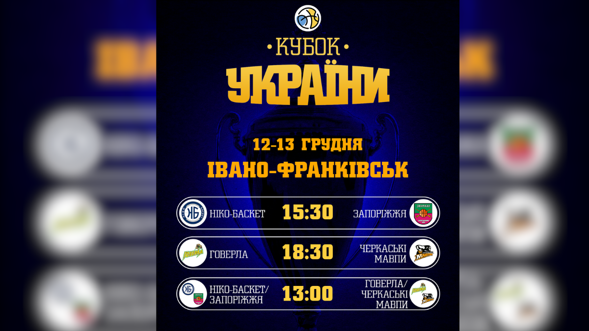 12-13 в Івано-Франківську відбудуться матчі першого етапу розіграшу Кубка України з баскетболу серед чоловічих команд. Тут зіграють «Прикарпаття-Говерла», «Запоріжжя», «Черкаські Мавпи» та «Ніко-Баскет».