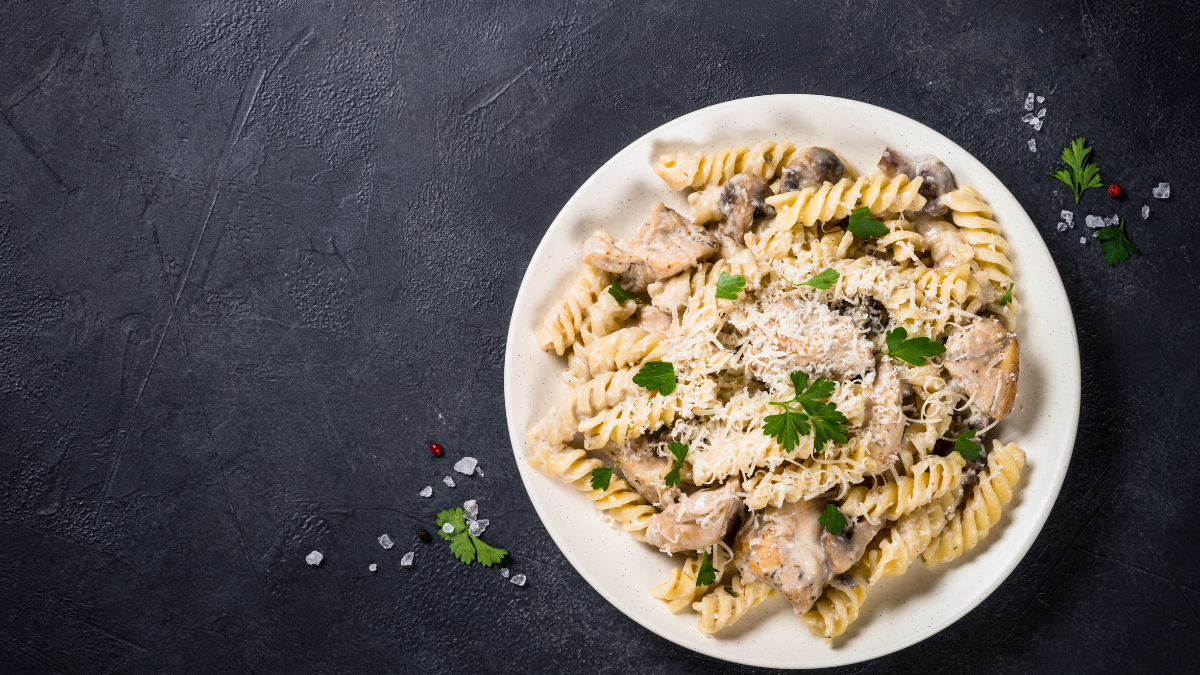 Паста — універсальна страва, яку легко приготувати навіть у будні дні. Один із класичних варіантів — з вершковим соусом і грибами, який поєднує ніжний смак вершків і насичений аромат обсмажених грибів.