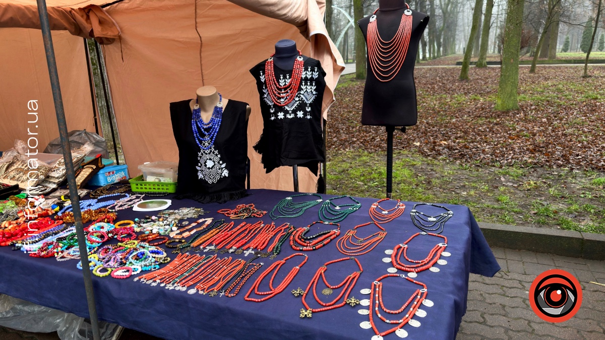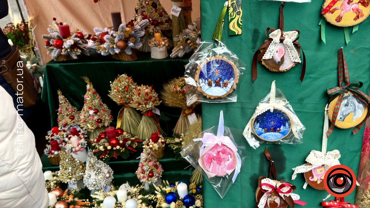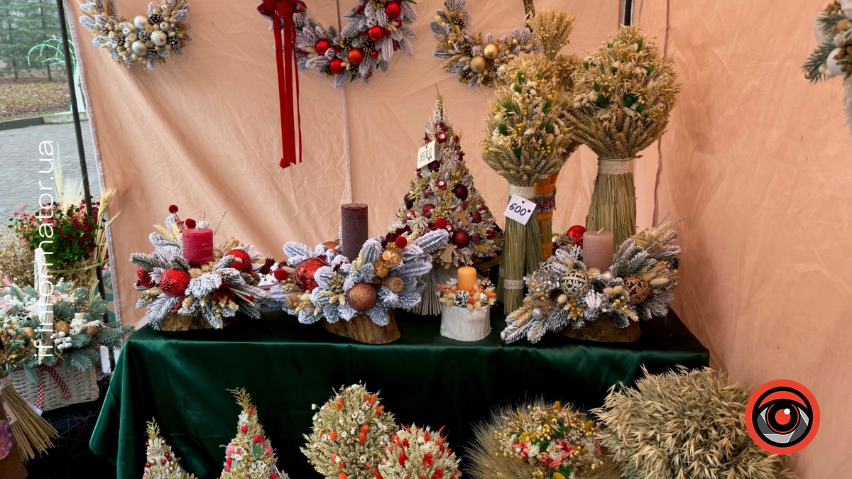 На ярмарку можна зустріти і саморобні елементи різдвяного декору: дідух, вінки та іншу святкову атрибутику. Окрім цього, у павільйонах є аксесуари, деякі з яких виготовили з натурального каменю.