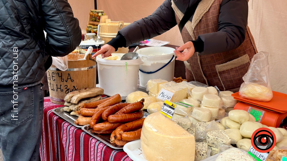 Також є секція із продуктами власного виробництва. На ній продавці дозволяють спершу скуштувати, а тоді вирішувати – купувати товар чи ні. Там же пропонують зігрітися теплими напоями або придбати якийсь смаколик, який можна з’їсти на ходу.