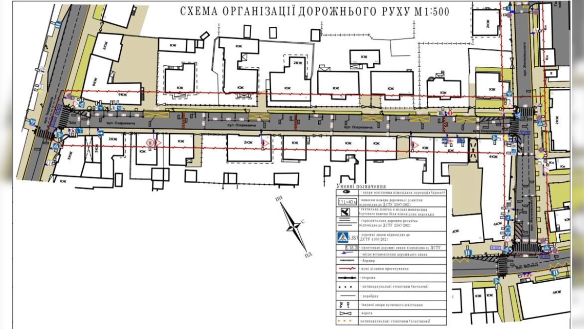 - по вул. Озаркевича — односторонній рух від вул. Чорновола у напрямку до вул. Желехівського.
