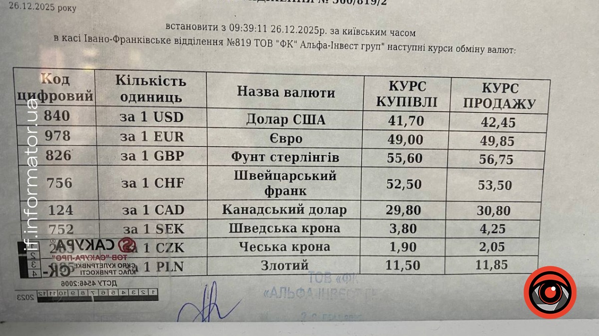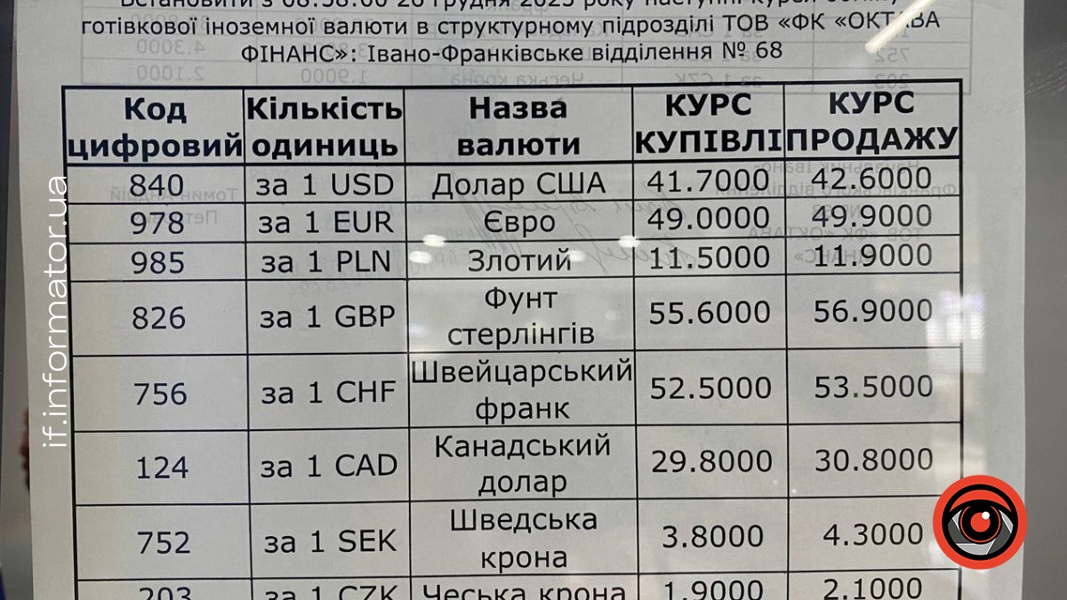 Читати також: Скільки коштують основні валюти у Франківську 19 грудня