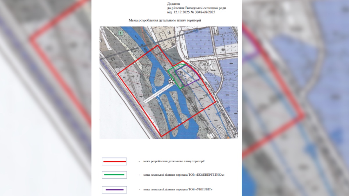 У вступній частині рішення ради йдеться: «з метою деталізації положень генерального плану населеного пункту селища Вигода, визначення планувальної організації і розвитку частини території населеного пункту без зміни функціонального призначення цієї території, взявши до уваги колективну заяву жителів громади від 04.11.2025 року…».