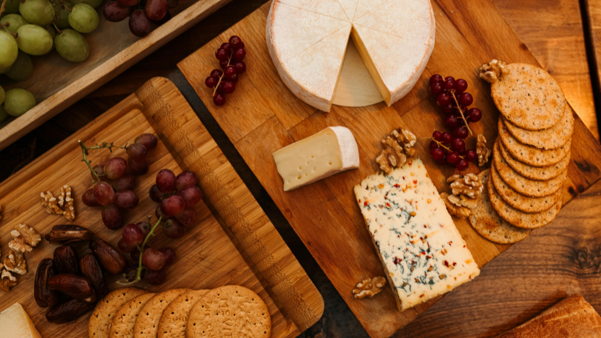 Сирна нарізка з горіхами та виноградом