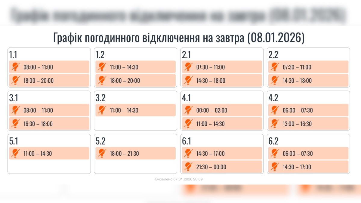 Графіки на 8 січня 2026 року