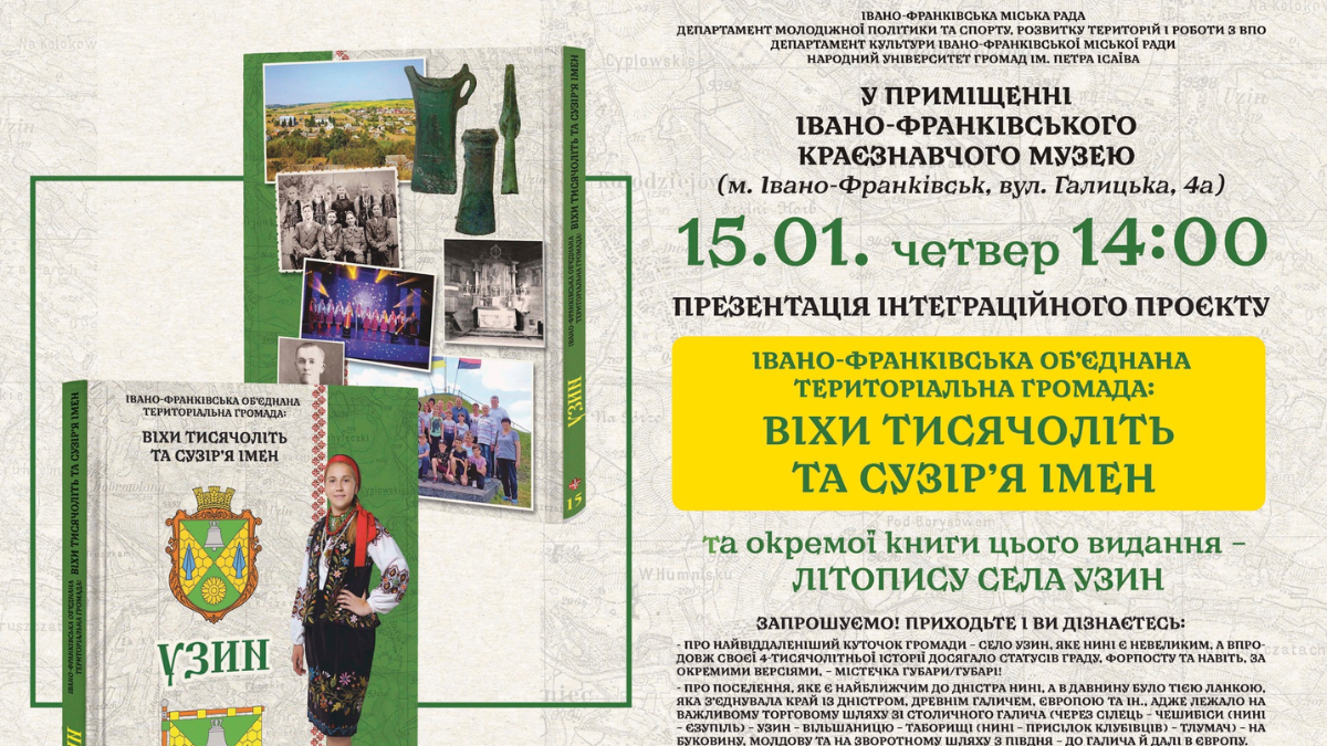 15 січня у Івано-Франківському краєзнавчому музеї презентуватимуть інтеграційний проєкт «Івано-Франківська об’єднана територіальна громада: віхи тисячоліть та сузір’я імен».