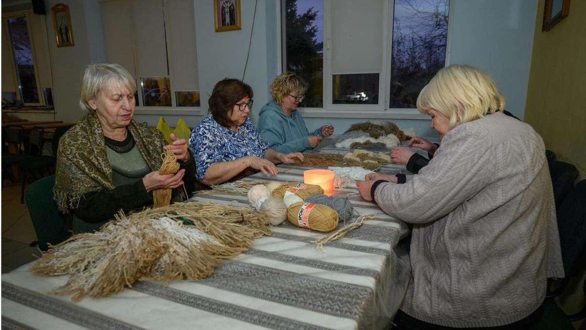 До допомоги долучаються усі: від дітей до пенсіонерів. Молодші – малюють листівки, роблять обереги, пишуть листи для захисників. Старші жінки, яким важко плести або зшивати костюми, розплітають в’язані речі, ріжуть нитки, складають їх у пучки, що використовують для плетіння. Багато людей забирають роботу додому, а до клубу приносять вже готові кавери, панчохи, зшиті плащі.