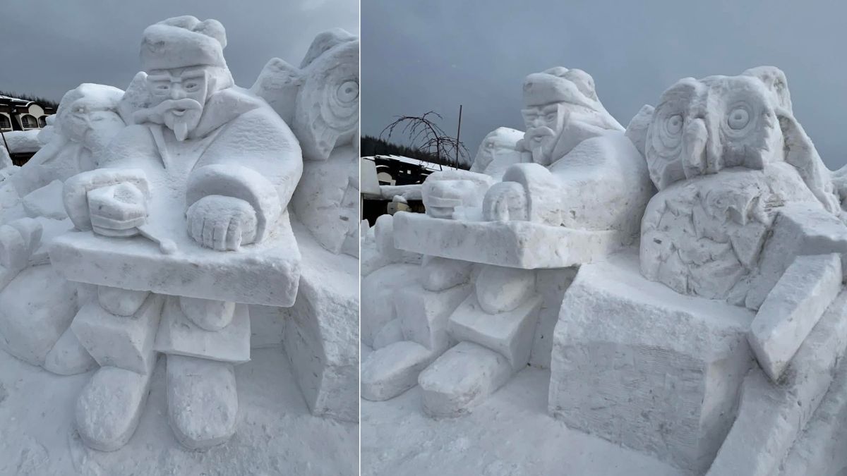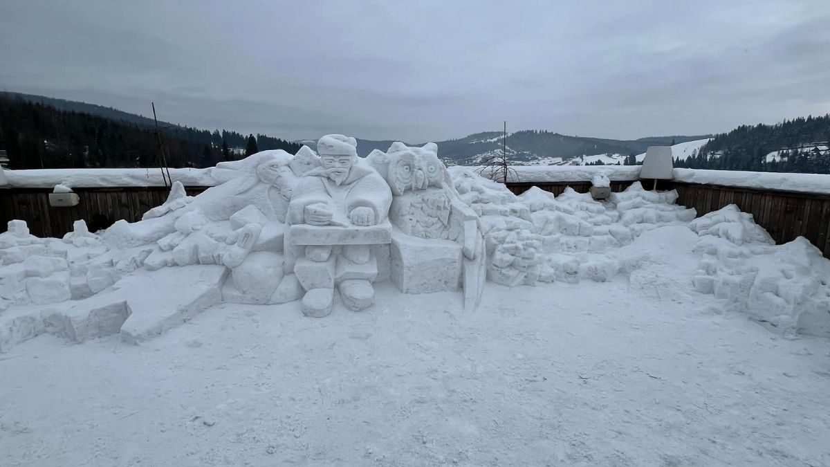 Ветеран війни з Перегінського Василь Семко та художник з Івано-Франківська Володимир Березний створили у Карпатах масштабні снігові скульптури, які вже стали популярною фотолокацією для туристів. У селі Поляниця митці презентували гігантську фігуру гуцула, виліплену зі снігу просто на терасі парку-готелю на рівні сьомого поверху.