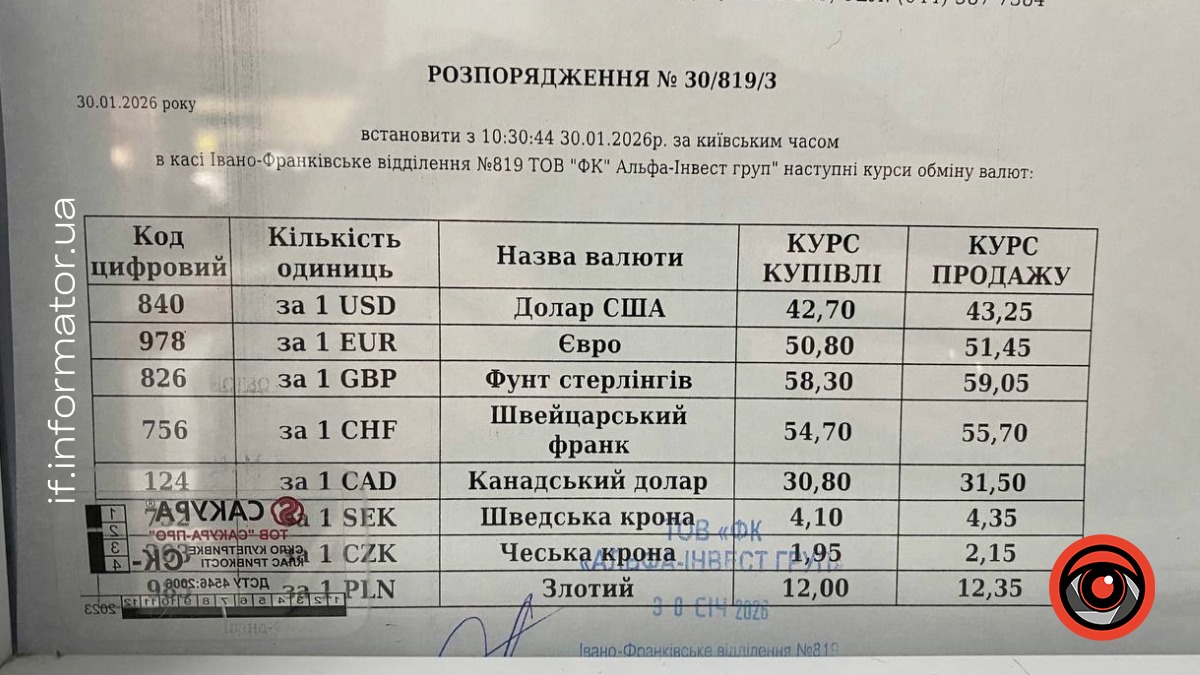 Читати також: Ціна долара та євро в обмінних пунктах Івано-Франківська 23 січня