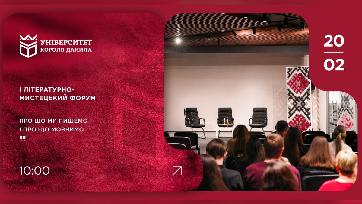 Університет Короля Данила організовує І Літературно-мистецький форум — подію для всіх, хто працює з українським словом і мислить у культурному контексті сьогодення. У межах форуму говоритимуть про сучасний літературний процес та роль української літератури в суспільстві.