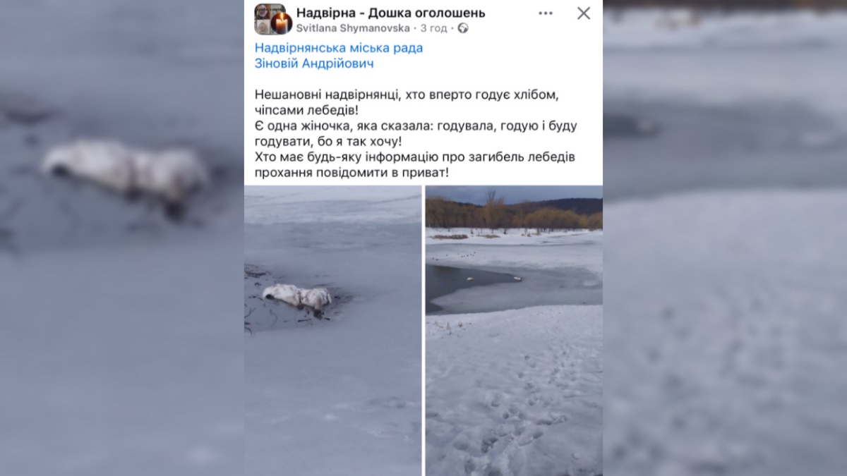У Надвірній на місцевій водоймі виявили двох мертвих лебедів. Інформація про це з’явилася у соціальних мережах.