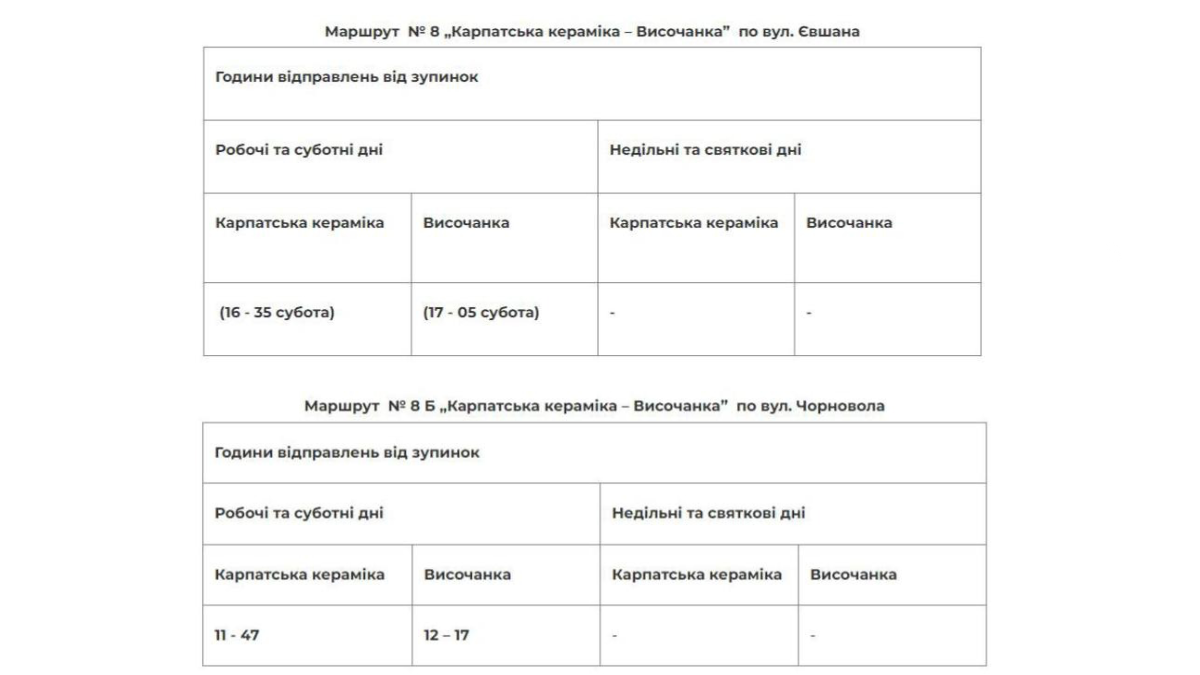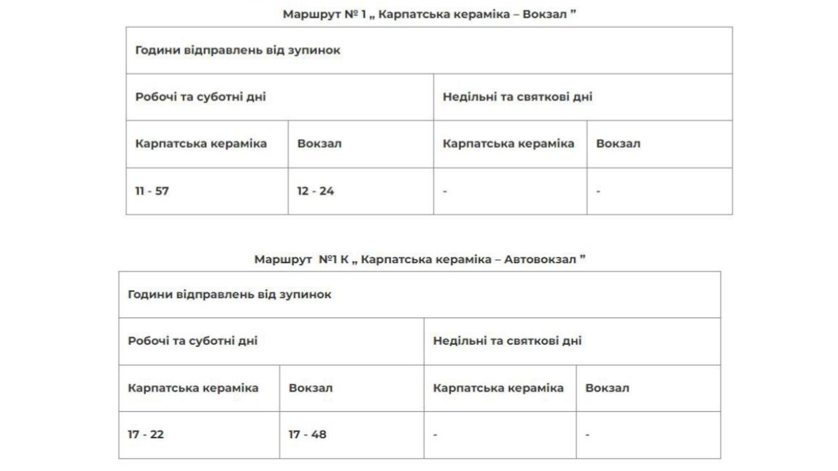 Детальний розклад нових пільгових рейсів на фото: