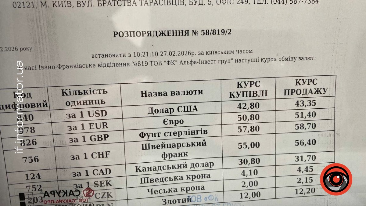 Читати також: Курс валют в Івано-Франківську 20 лютого