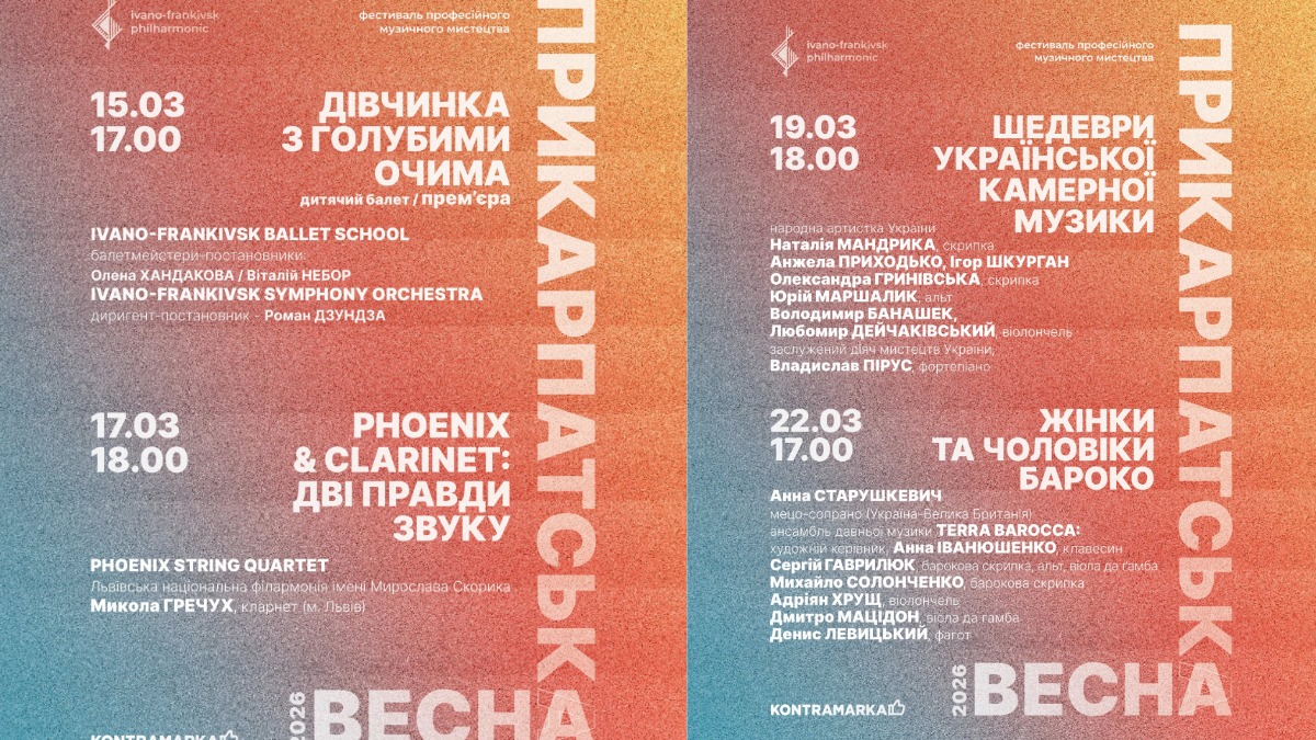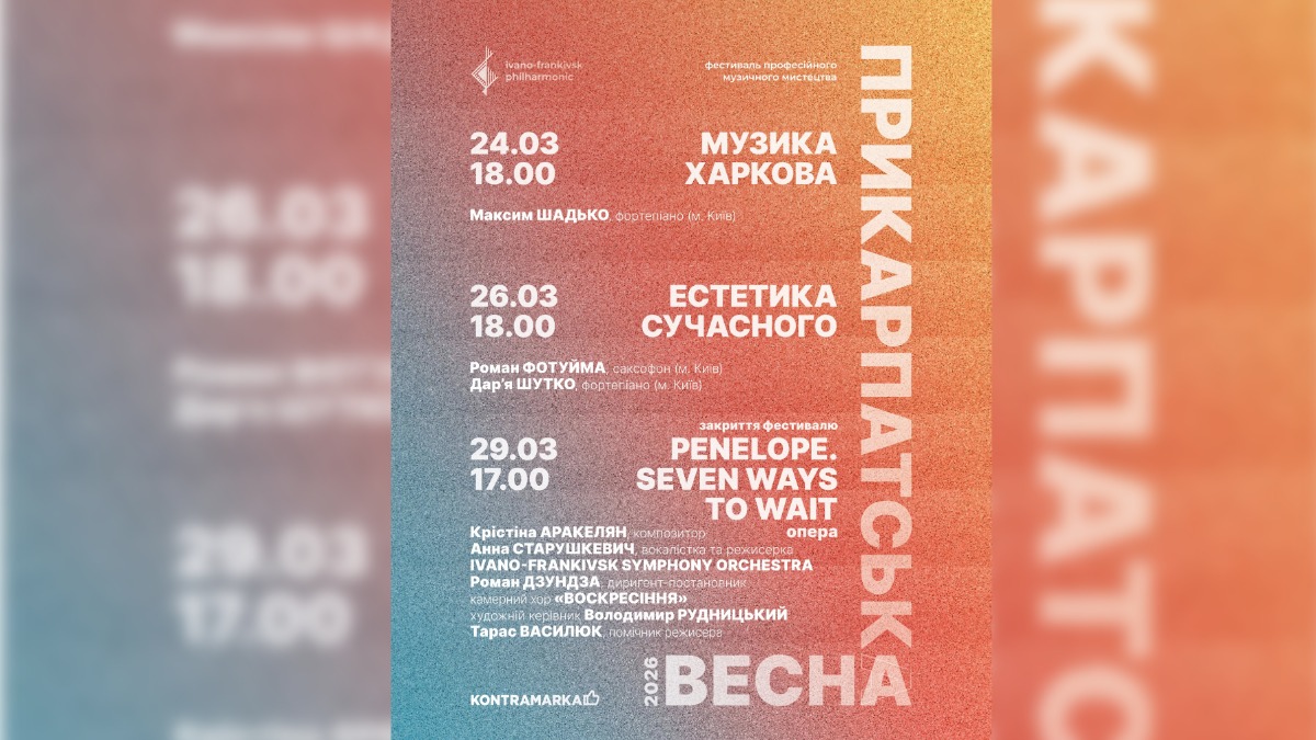 В Івано-Франківській обласній філармонії відбудуться прем’єра дитячого балету, камерні вечори та шедеври української музики, барокові інтерпретації, сучасні музичні проєкти та опера-закриття “Penelope. Seven Ways to Wait”.