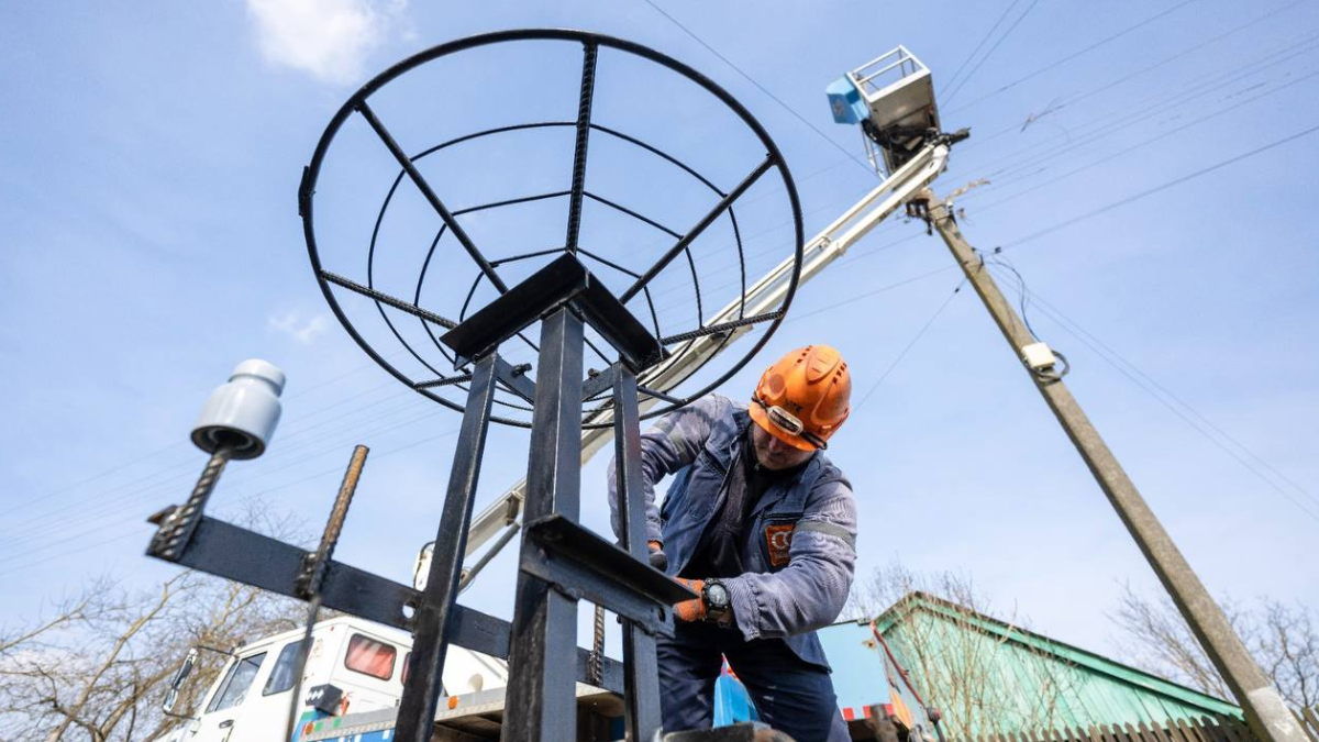 На Прикарпатті енергетики традиційно готуються до повернення лелек. За народними прикметами, птахи мають прилетіти 19 березня, тому фахівці АТ «Прикарпаттяобленерго» перевіряють старі гнізда та встановлюють на електроопорах спеціальні платформи для нових.