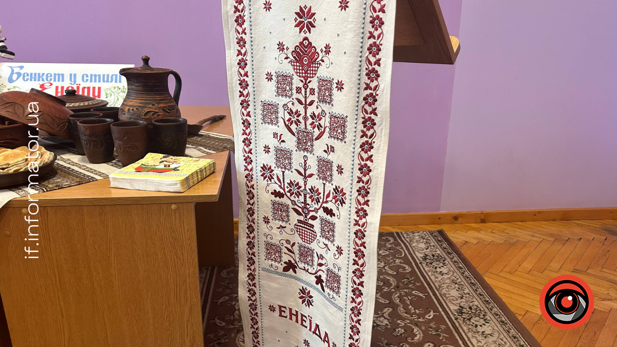 12 березня в Івано-Франківській обласній бібліотеці для дітей відбулася презентація культурно-освітнього проєкту «Гостина з Енеїдою». Тут представили гастрономічний рушник із вишитими QR-кодами, які відкривають відеорецепти страв, згаданих у поемі «Енеїда» Івана Котляревського.