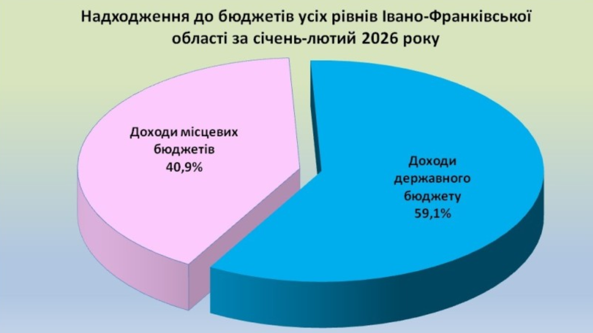 Упродовж січня-лютого 2026 року платники податків Івано-Франківська область перерахували до бюджетів усіх рівнів 6,7 млрд грн податків і зборів.