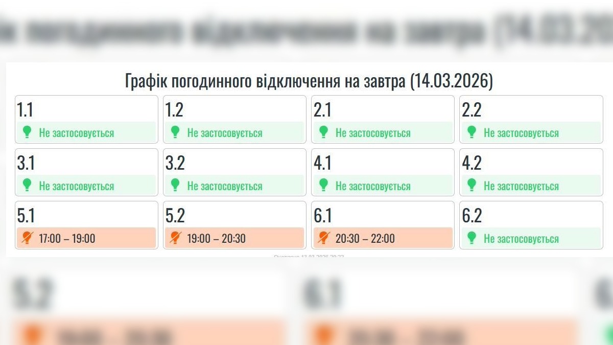 14 березня в Івано-Франківській області діятимуть графіки погодинних вимкнень електроенергії. Обмеження запроваджують через наслідки російських ракетно-дронових атак на енергооб’єкти.