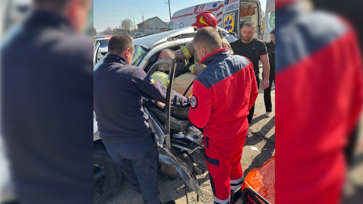 Внаслідок удару водія легкового автомобіля затиснуло в понівеченому транспортному засобі. Рятувальники за допомогою спеціального інструменту деблокували постраждалого та передали його працівникам екстреної медичної допомоги.