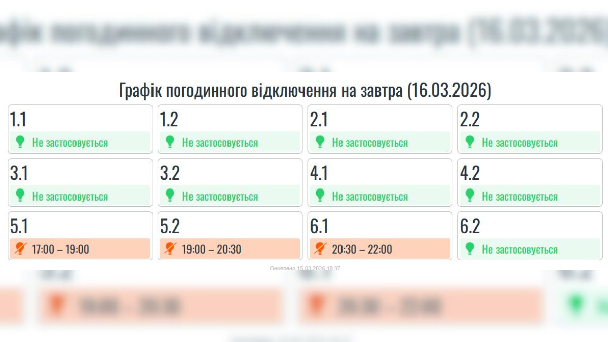 16 березня в Івано-Франківській області діятимуть графіки погодинних вимкнень електроенергії. Обмеження запроваджують через наслідки російських ракетно-дронових атак на енергооб’єкти.