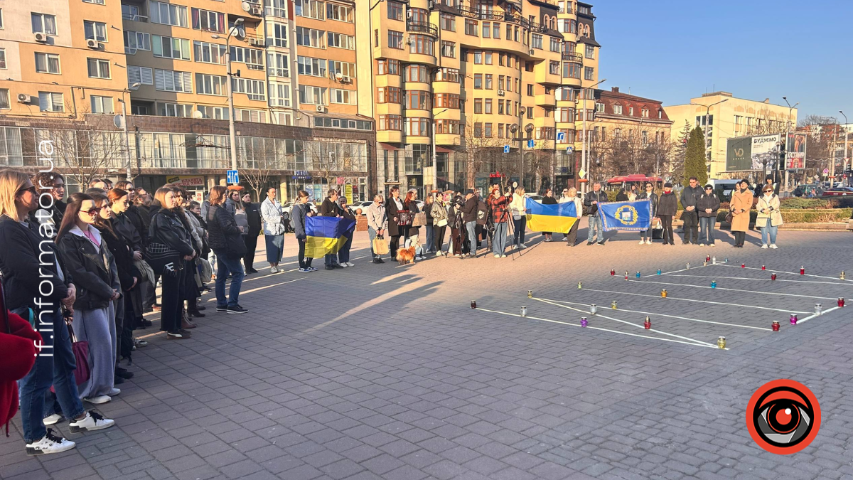 16 березня на площі біля Івано-Франківського драмтеатру відбулася тиха акція пам’яті до роковин російського авіаудару по Маріупольському драматичному театру, де загинули сотні мирних жителів.