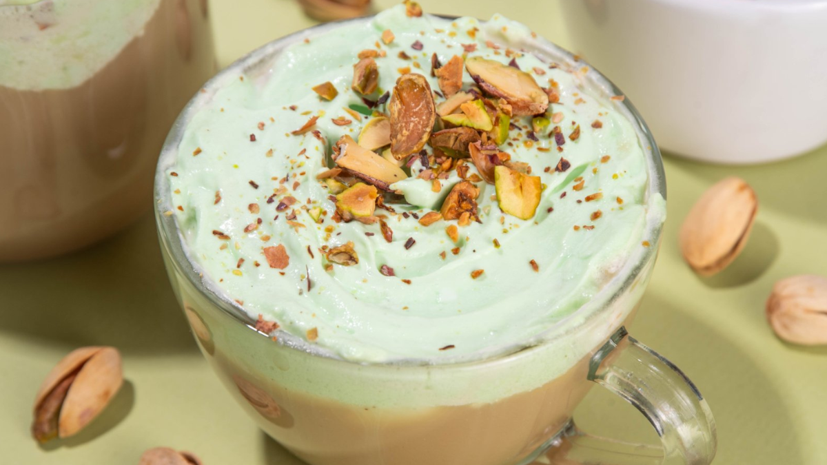 Холодне фісташкове лате – вдалий вибір для теплої пори року. Напій поєднує еспресо, молоко та ніжну пінку з фісташкової пасти, створюючи м’який, збалансований смак. Готується просто: у склянку з льодом додають молоко, вливають каву та доповнюють густою горіховою пінкою.