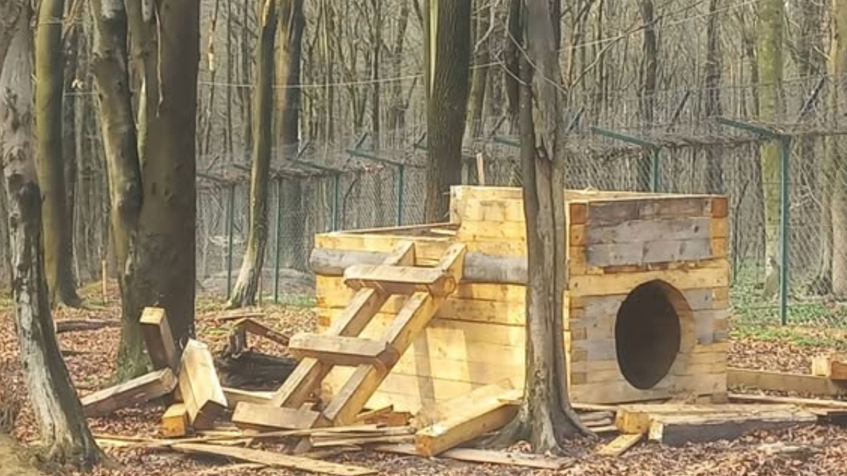 «На відміну від природних умов, у нашому центрі ведмеді здобуванням їжі особливо не переймаються, тому надлишок вільного часу стимулює їхню ігрову поведінку. Переважно наші клишоногі активні зранку та ввечері, а в обід люблять поспати. Особливою грайливістю відзначається самець Мир. Вирішив за кілька днів зруйнувати дерев’яну хатинку, яка була зроблена для нього та інших ведмедів», — йдеться у дописі.
