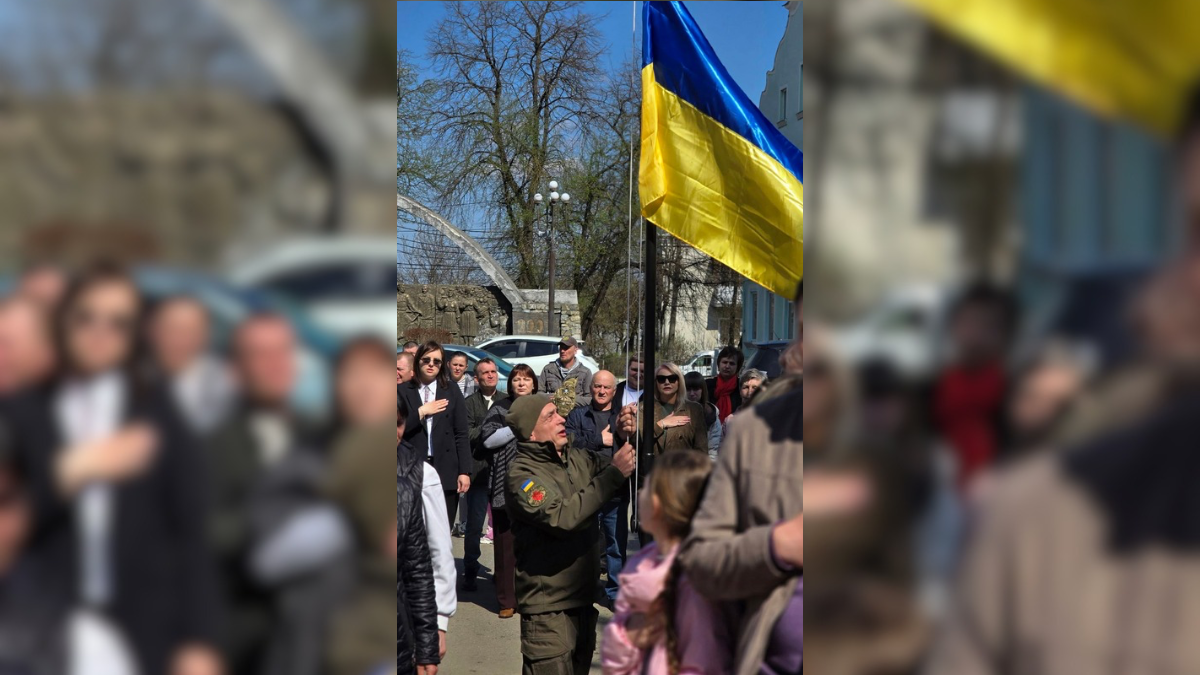 Поруч розташували два прапори: синьо-жовтий — державний і чорно-білий — надії.