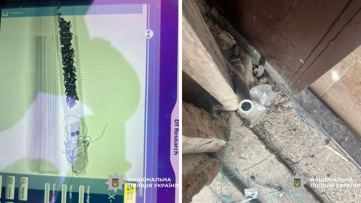 Також під час обшуку поліцейські виявили та вилучили власноруч накреслені схеми вибухового пристрою, саперний тестер для контролю підриву вибухівки електричним способом, а також мобільні телефони з картами мобільних операторів рф.