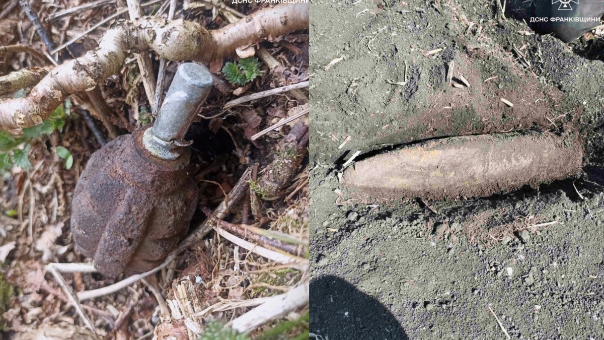Гранату знайшли у селі Волова Верховинської громади, а артилерійський снаряд — у селі Гарасимів Обертинської громади Івано-Франківського району.