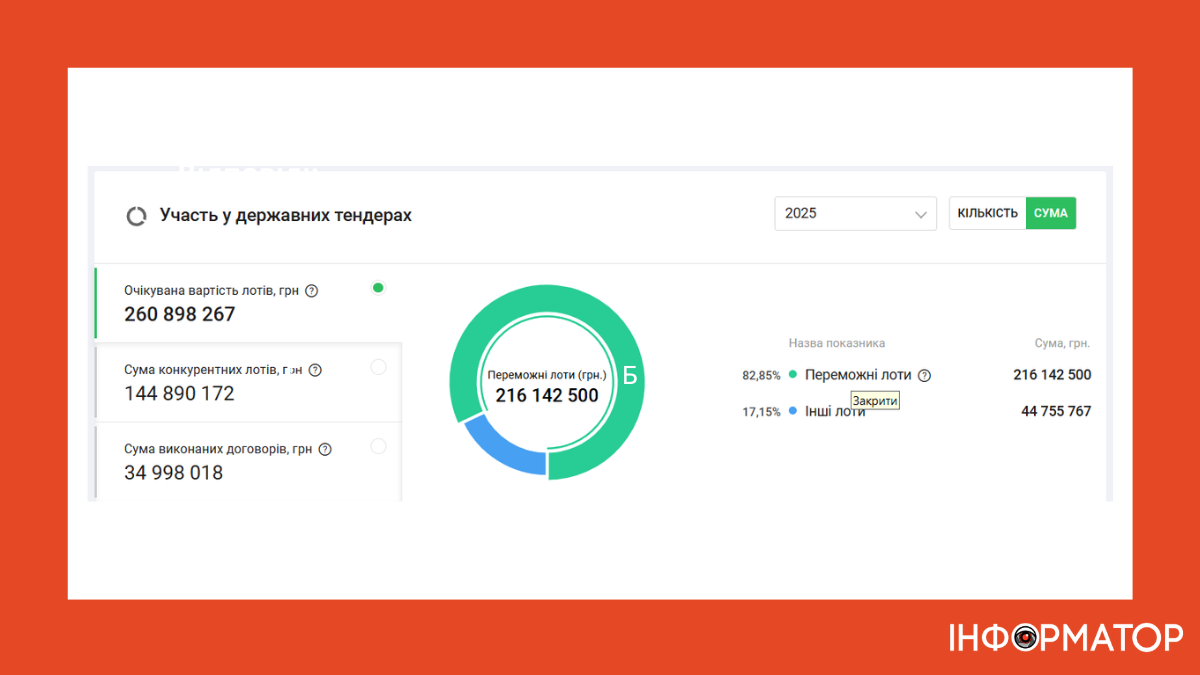 Переможні лоти ТОВ «Автомагістраль-ІФ» у 2025 році. Скриншот із YouControl